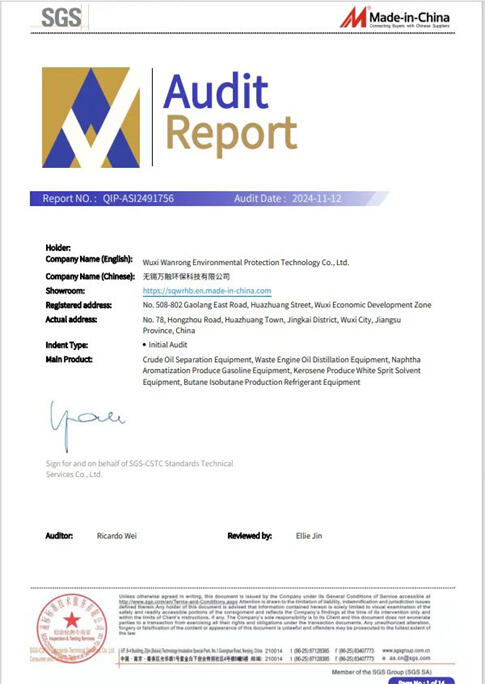 Wuxi Wanrong è leader nel trattamento degli idrocarburi e nelle soluzioni ambientali, coprendo raffinazione petrolifera, ricerca e sviluppo di progetti, produzione di attrezzature e vendite. In collaborazione con Sinopec Shanghai e Nanjing Chemical Research Institutes, la nostra tecnologia all'avanguardia include la rigenerazione di oli usati (gasolio/olio base), l'idrogenazione del greggio (carburanti standard Euro) e la separazione dei gas, tutti conformi agli standard API/nazionali. Eccelliamo nella raffinazione del greggio (ULSD, risparmio energetico), nel ri-rifinamento degli oli usati (recupero >99,5%), nei solventi ad alta purezza e nella separazione dei gas (purezza >99,9% per H₂/N₂).